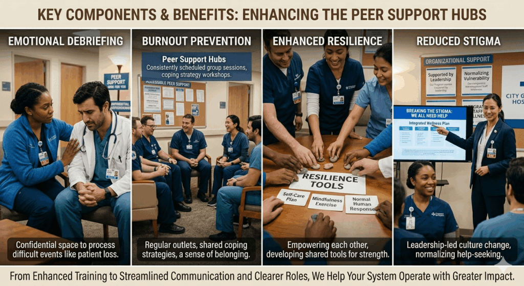 If you already have peer support in place, we help you take it to the next level. We refine what’s working, strengthen what’s missing, and bring structure, consistency, and confidence to your team. From enhanced training to streamlined communication and clearer roles, we help your current system operate with greater impact and sustainability.